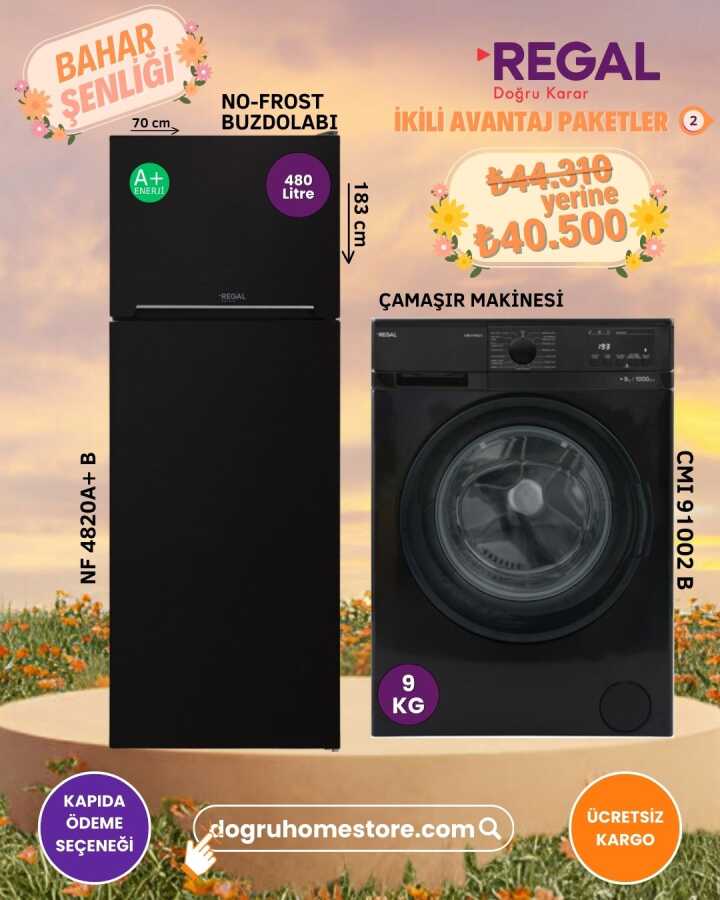 Regal No-Frost Buzdolabı ve 9 Kg Çamaşır Makinesi İkili Avantaj Paketi – Bahar Şenliği Özel Fiyatıyla