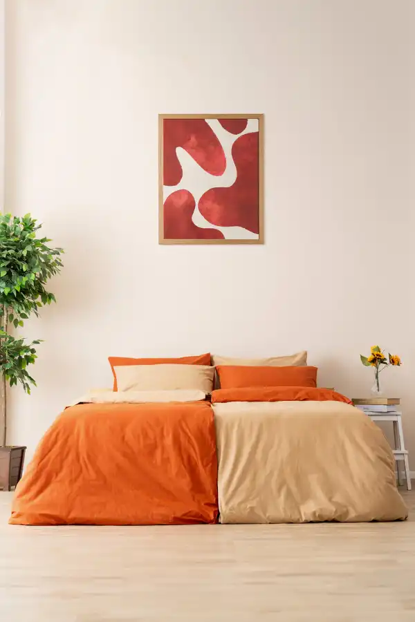 - Şık Tasarım: Kiremit ve bej renklerinin uyumu, yatak odanıza sıcak ve davetkar bir hava katar.