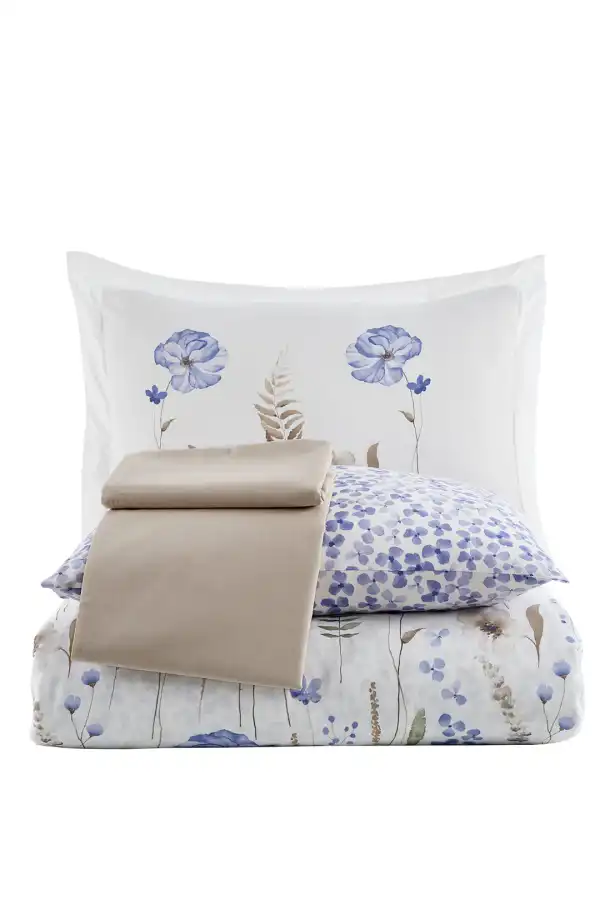 • Blanca Nevresim Takımı, buğdayın sakinleştirici tonları ve mavinin huzur veren detayları ile doğanın estetiğini yatak odanıza getiriyor.